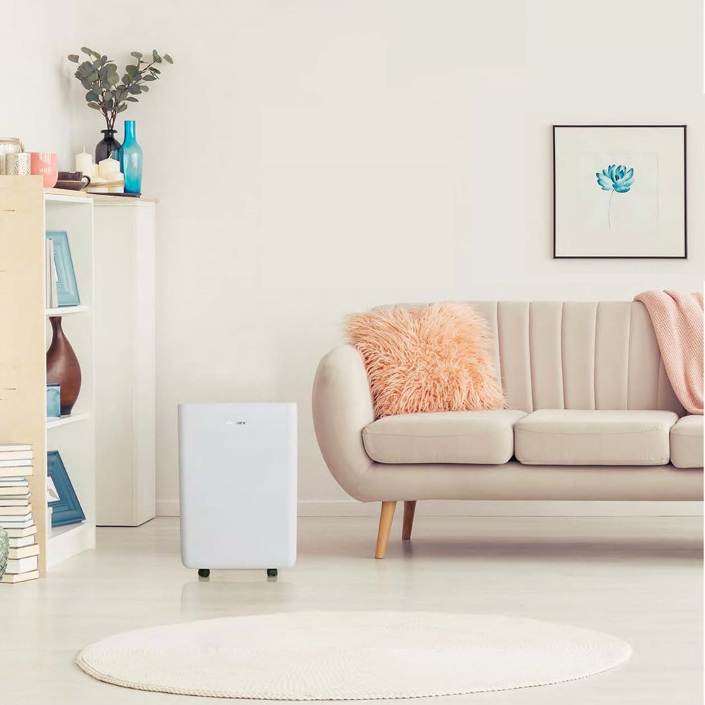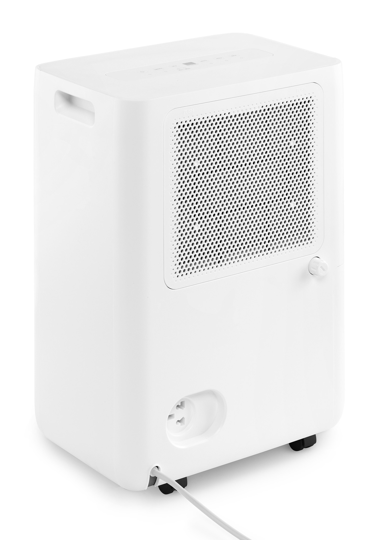 Ideal für Bereiche bis 75 m² mit einer Entfeuchtungsleistung von 16 Litern pro Tag. Der Luftentfeuchter ist einfach zu transportieren und passt dank seines modernen Designs hervorragend in Wohn- oder Schlafzimmer, Badezimmer oder Keller- und Hobbyräume. Das Kondensat kann entweder im integrierten Wassertank gesammelt oder direkt abgeleitet werden. Dank des umweltfreundlichen Kältemittels R290 ist er außerdem eine klimafreundliche Wahl.